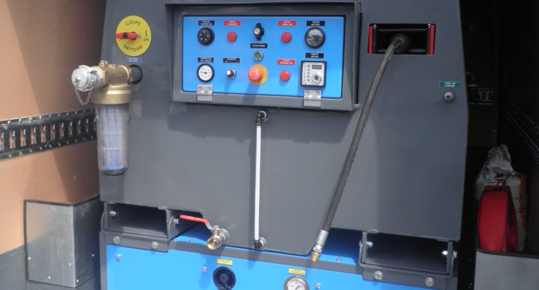 Wir haben eine Reihe von Produkten entwickelt, mobile Waschschlitten, Hydrogommeuse, Straßenwaschanlage, die mit Gas oder Hybrid mit Strom arbeiten; von der technischen Gruppe bis zum Träger, um sicherzustellen, dass die Benutzer ohne gesundheitsgefährdende Entladungen arbeiten und eine sehr geringe CO2-Emission erzeugen.